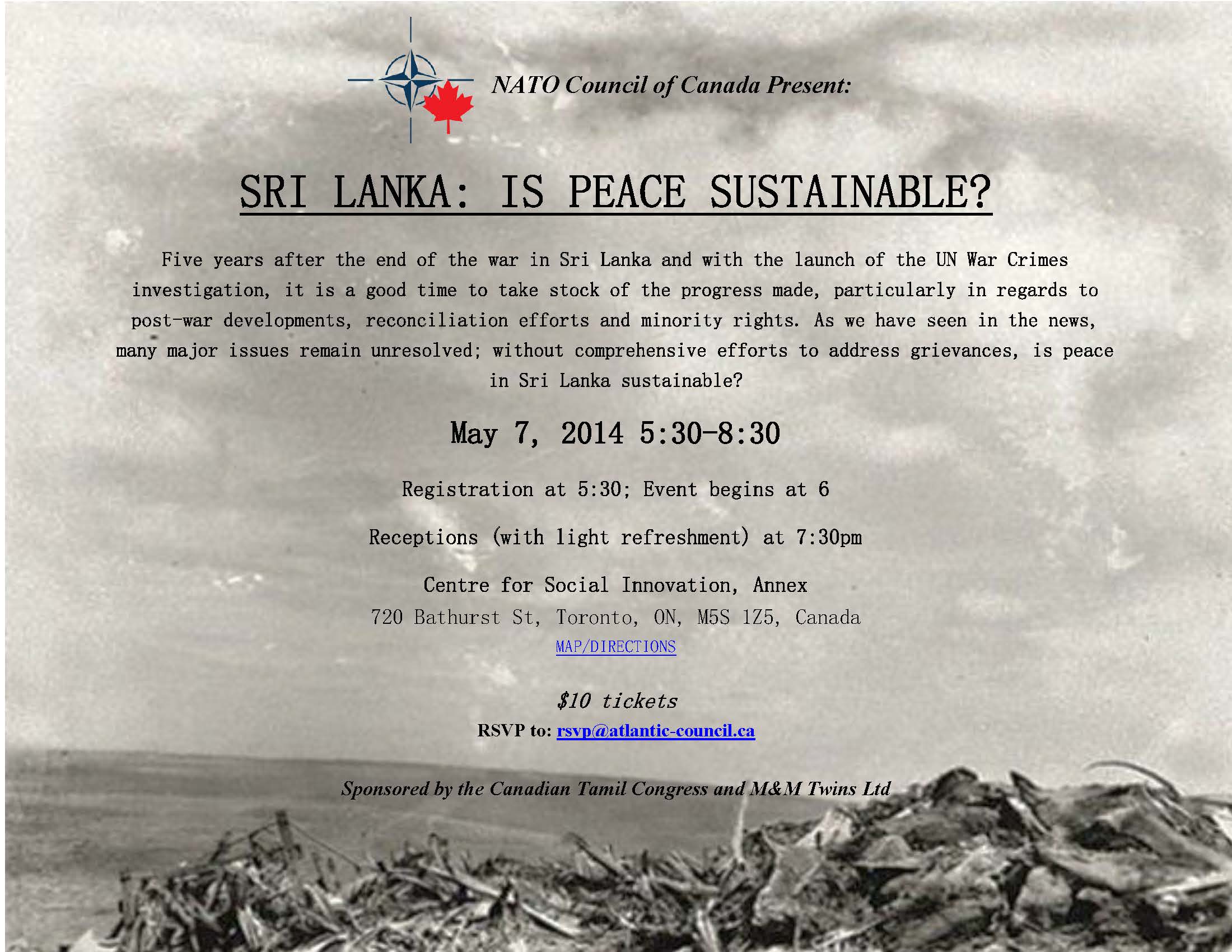 On May 7th, the NATO Council of Canada hosted a conference at the Centre for Social Innovation, inviting experts to discuss the prospects for peace in Sri Lanka. If you missed it, we invite you to take a look at a few clips highlighting the evening’s discussions! https://www.youtube.com/watch?v=sRQghKUupxI