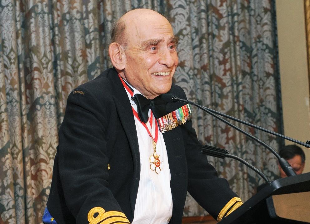 Peter C. Newman joined what was then the Royal Canadian Naval Reserves for his inaugural training at HMCS York in 1947, when he was 18 years old, having previously played the drums with a Sea Cadet Band in Burlington. His was the last group of UNTDs to join as ordinary seamen. Almost immediately he was assigned to the Algerine, HMCS Portage, for sea training to Bermuda and later, among other ships, served aboard HMCS Swansea (a frigate) and the tribal class destroyer HMCS Iroquois. After earning his commission, he spent the next 40 years in various staff positions, most recently as a senior advisor to RAdm Tom Smith, being promoted to Captain in 1987. As well as a CD, he was appointed as an Officer and later promoted to Companion in the Order of Canada and has been awarded seven honourary doctorates –including from Queen’s, the Royal Military College, UBC and York universities. The author of 25 books that have sold more than two million copies, he is credited with revolutionizing the style of political and business writing, making his publications both more accessible and more revealing. He became editor-in-chief of the Toronto Star, the country’s largest circulation newspaper and later took over the editorship of Maclean’s, turning Canada’s national magazine into a newsweekly. Mr Newman was the recipient of the NATO Council’s 2010 St. Laurent Award.