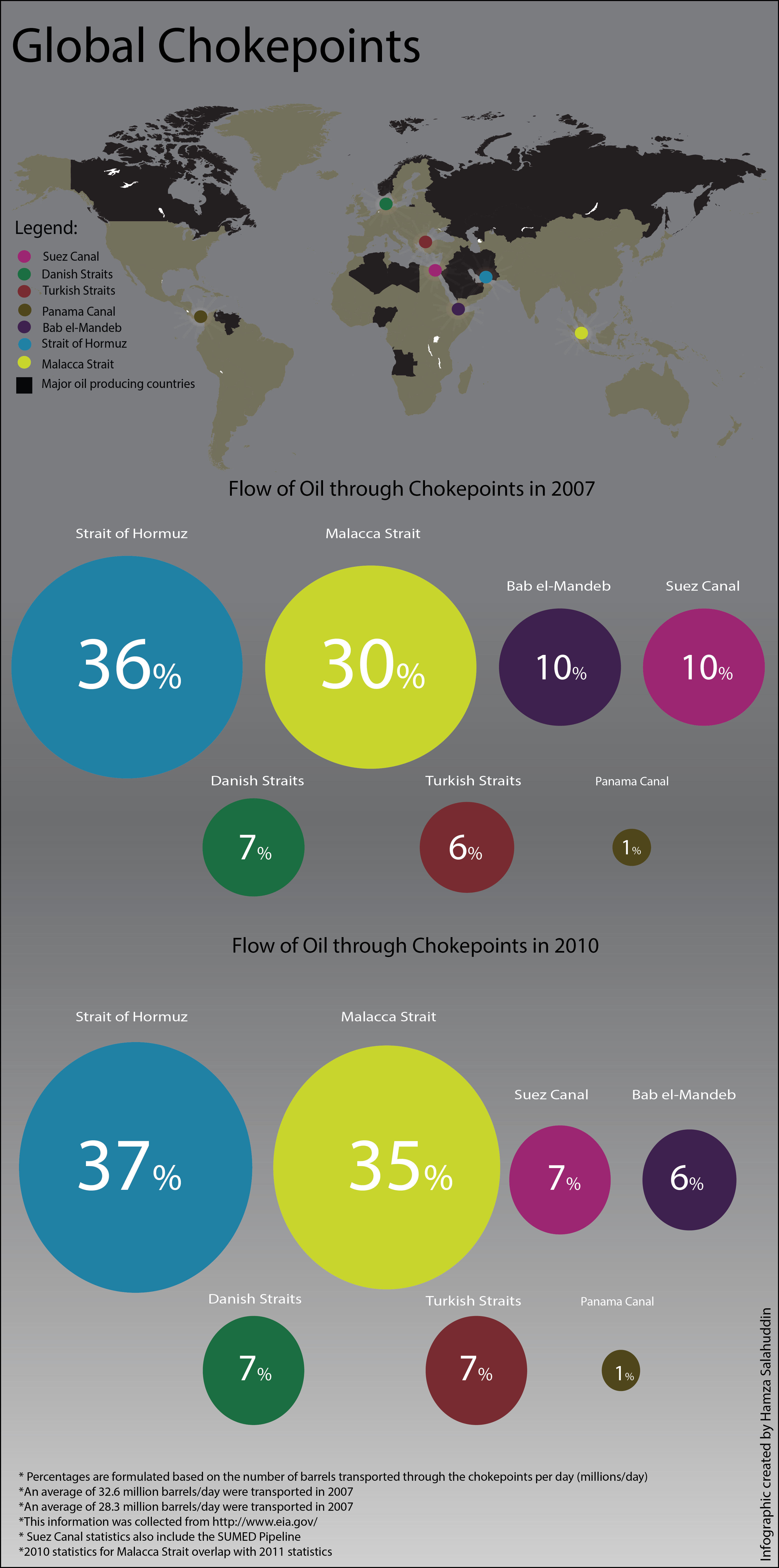 Lastly, the percentages do not represent the total amount of oil transported. It represents the total amount of oil transported through chokepoints.
