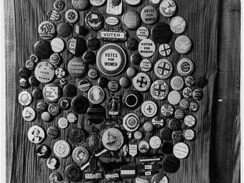 Image: Collection of “votes for women” buttons made by Mrs. Alice Park of Palo Alto, California, 1922. Source: Public Domain, via Wikimedia Commons.